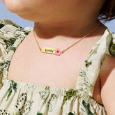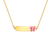 Personalized Name Bar Necklace With Butterfly Flower, Stainless Steel Cute Pendant For Girls Childs Kids Charms Gift